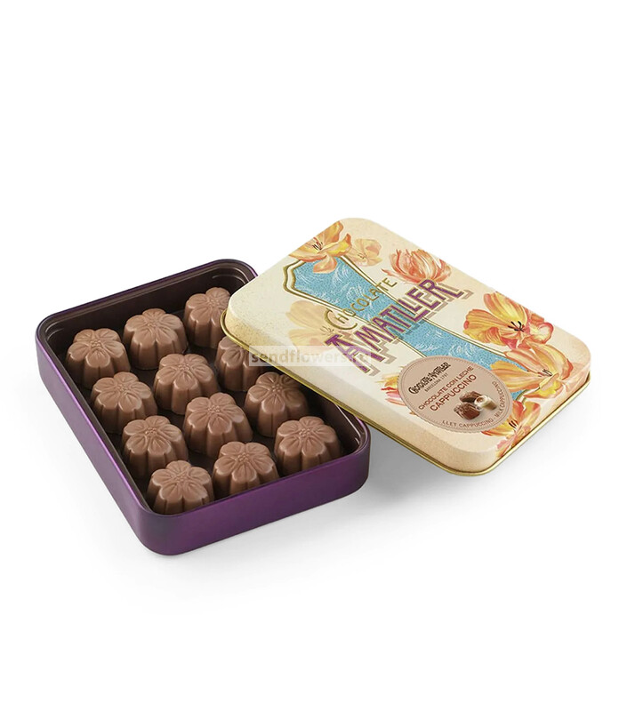 Корпусные конфеты в форме цветочка из молочного шоколада, с начинокой из крем-ганаш с добавлением свежемолотых зерен натурального кофе. Вес: 72 гр. Страна производитель: Испания (Барселона).